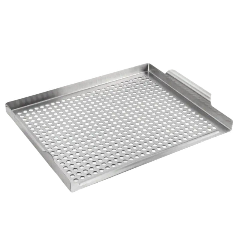 Oppdag vår grillpanne med hull, det perfekte tilbehøret for alle som elsker grilling. Pannen er designet for å la varmen og røyken fra grillen sirkulere fritt, samtidig som små grønnsaker, kjøttbiter og sjømat holdes på plass. Stek grønnsaker, mais, sopp, små kjøttbiter eller annet grillmat uten at det faller gjennom ristene.