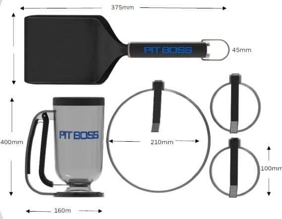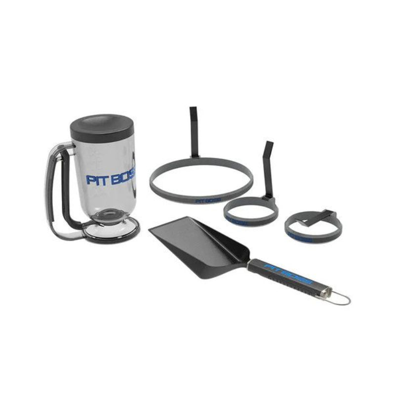 Start dagen som en mesterkokk med vårt Pit Boss Frokostsett. Her får du alt du trenger til en komplett frokost: en stor stekespade med flaskeåpner for enkel snuing og servering, en praktisk røredispenser for perfekt porsjonering av pannekakerøre, en stor omelettform (20,9 cm) og to eggringer (10,2 cm) for jevne og pene speilegg.