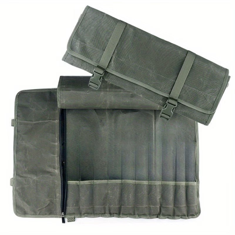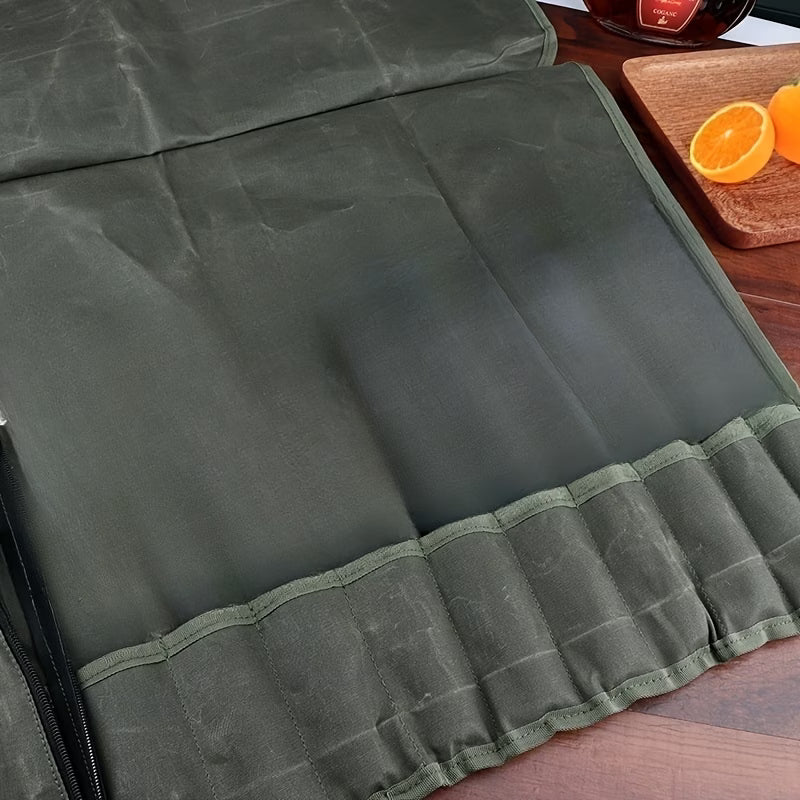 Knivvesken er laget i slitesterke materialer som tåler daglig bruk. Den mørk grønne fargen gir et eksklusivt og tidløst uttrykk, samtidig som materialvalget sørger for at vesken holder formen og beskytter innholdet effektivt.